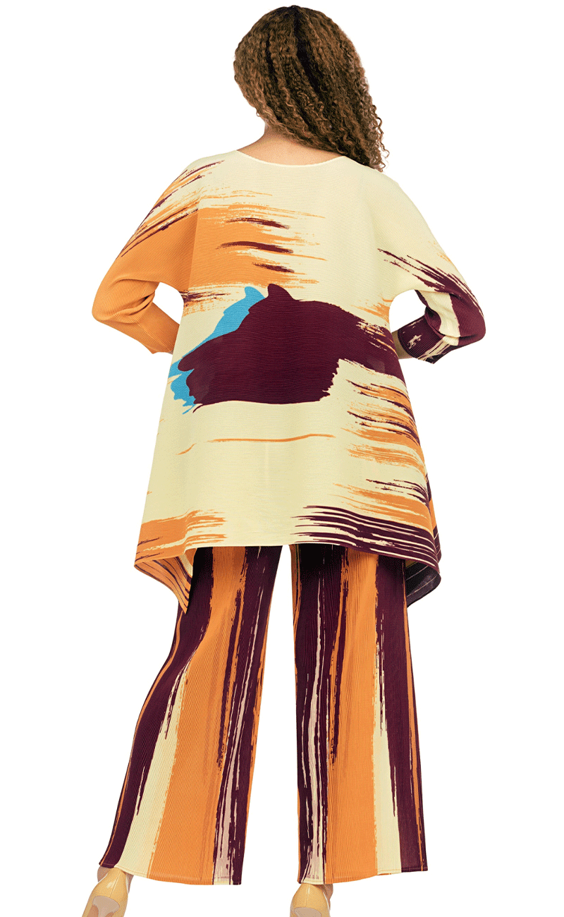 Discover effortless style with the Giovanna Pant set, featuring a brown print design paired with an oversized tunic. This comfortable, fashion-forward ensemble offers a relaxed fit that flatters all body types, available in sizes S to 2X. Perfect for making a statement while enjoying all-day comfort, this set is ideal for casual outings or gatherings where ease and elegance matter.