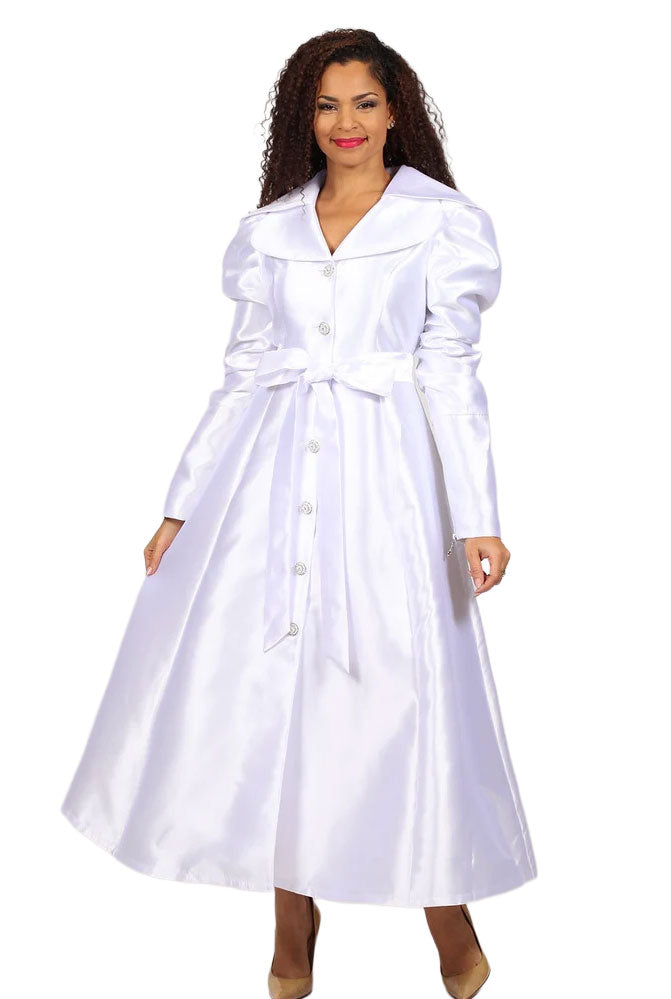 Make a statement for your special occasion with Diana Couture Church Dress 8743. Boasting a luxe silky maxi design, this dress offers eye-catching features such as a wide collar, ruched sleeves, and a sash belt with a rhinestone button front. Available in classic white or black, the dress comes in sizes 8-24 for a timeless look that flatters any figure. Stand out at church or your wedding in this exquisite Diana dress.